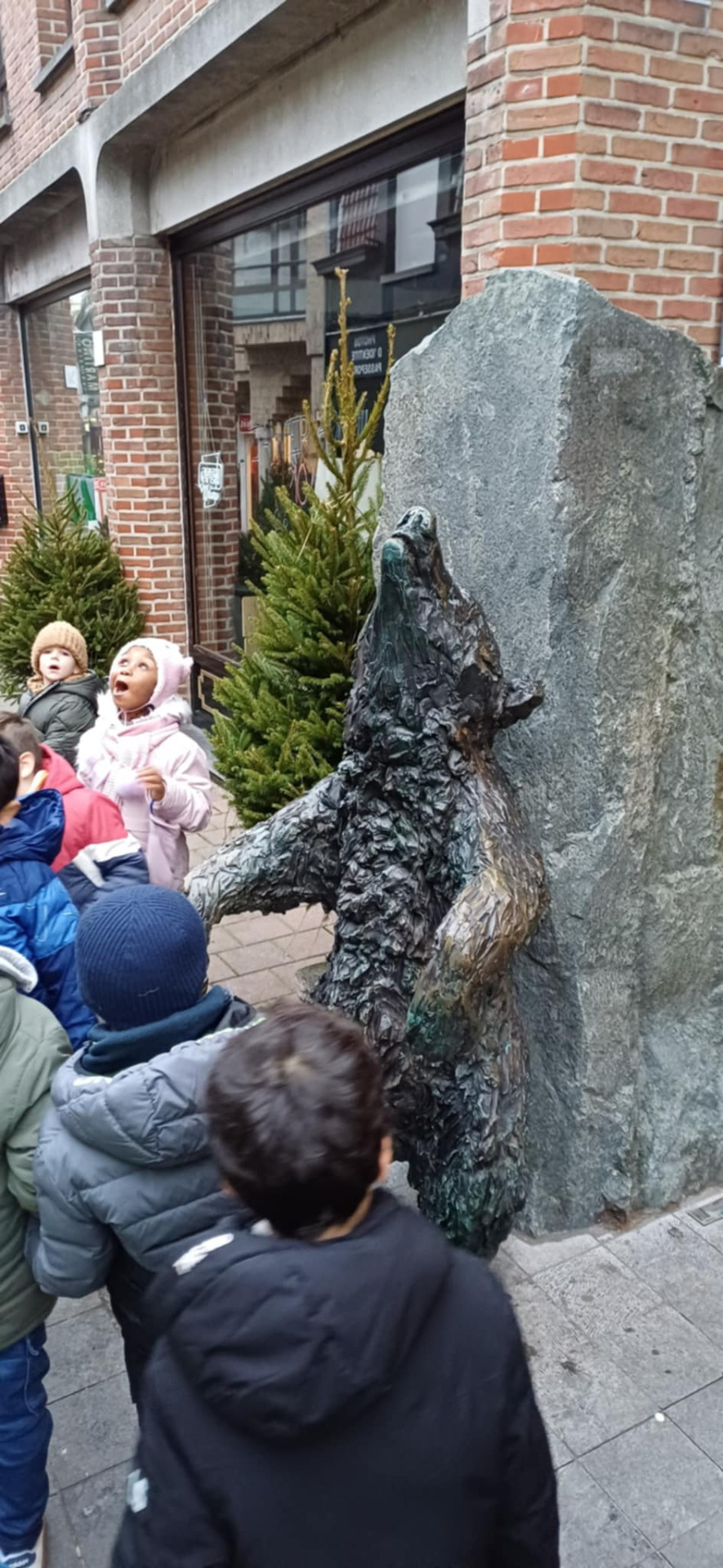 Lors de la dernière semaine précédant les vacances d'hiver, Mme Elise a proposé de réaliser la balade des ours dans les rues du centre de Mouscron dans le cadre du PECA (Parcours d'Education Culturelle et Artistique).