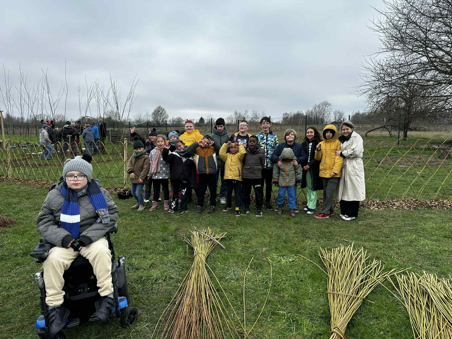 Durant cette journée de travail, les classes de Mesdames Catherine et Chloé ont eu l'occasion de s'initier à la vannerie en réalisant des mangeoires. Les élèves de Madame Nathalie et Monsieur Julien sont venus apporter leur aide pour pailler la haie.