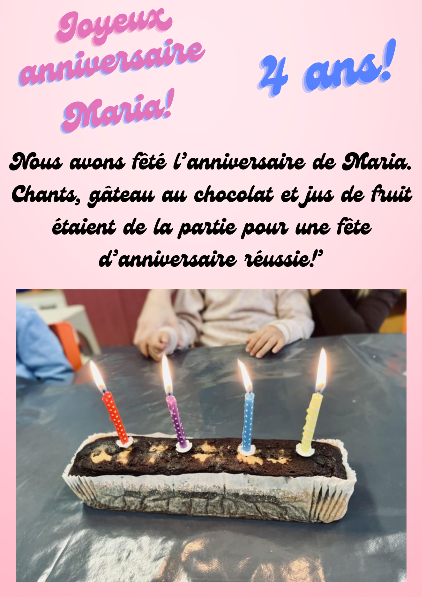 Lundi 24 novembre, notre copine Maria a soufflé ses 4 bougies.