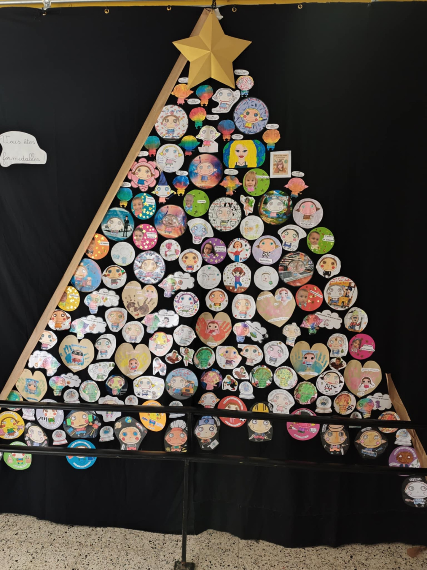 Cela fait maintenant plusieurs années que Mme Céline L. (maternelle) propose le projet sapin solidaire. Celui-ci consiste à réaliser une illustration/un dessin représentant chaque enfant et chaque membre du personnel.